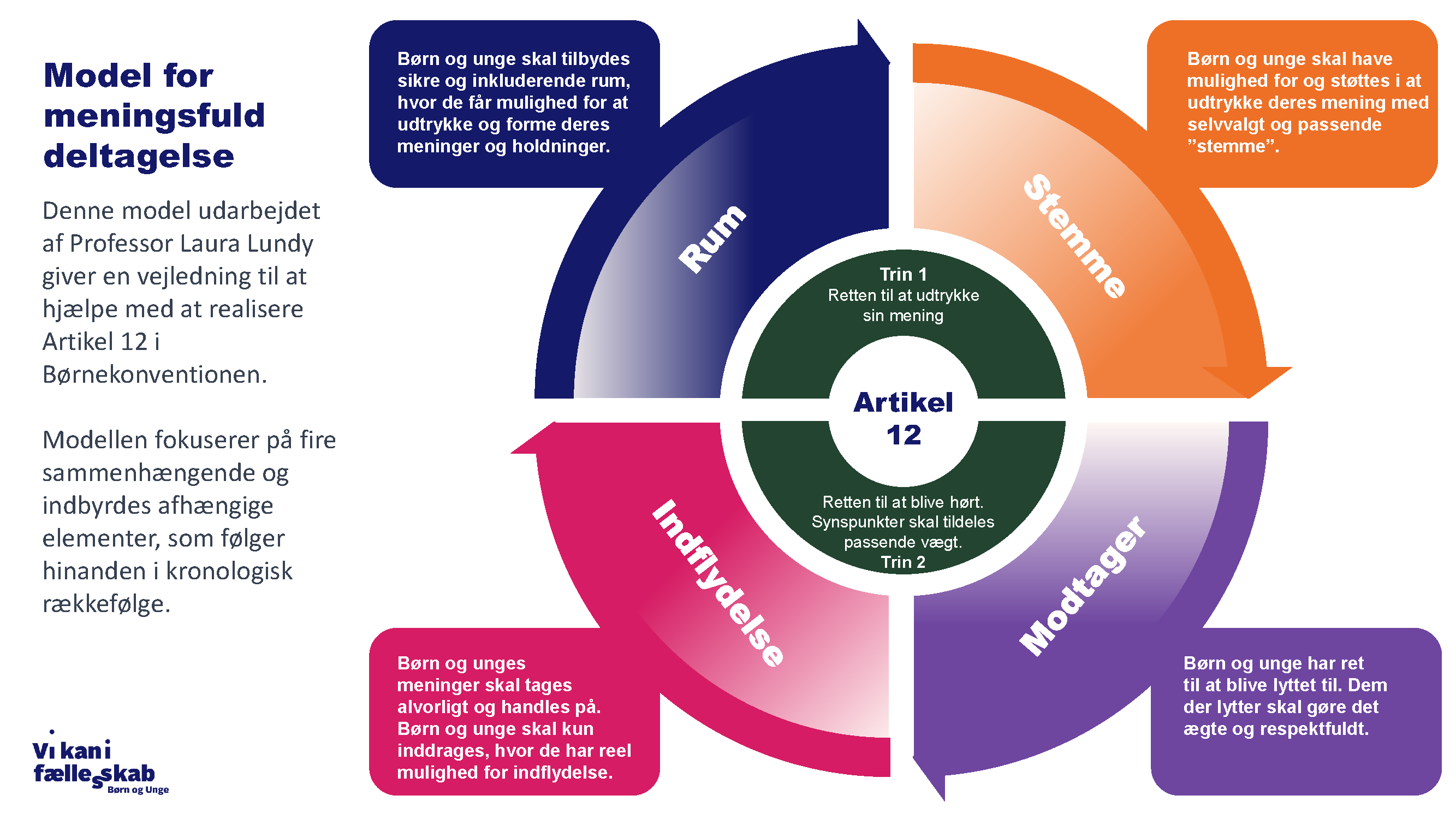 og kontinuerligt arbejde med mindset og fælles børnesyn. For at understøtte dette, udvikler og anvender vi en Aalborg Kommune model for børne- og ungeinddragelse, til gavn og for både børn og voksne i kommunen.