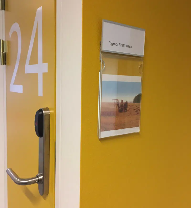 | Eksempel: Små enheder, afbrudte gangforløb, mindre glaspartier og genkendelighed skaber hjemlighed, som primært findes i boenhederne, | Eksempel: Åbne, transparente gennemskuelige rum og større glaselementer giver en 'institutionel/neutral' atmosfære, der hovedsageligt findes i udvalgt service, personale og fællesområder. |