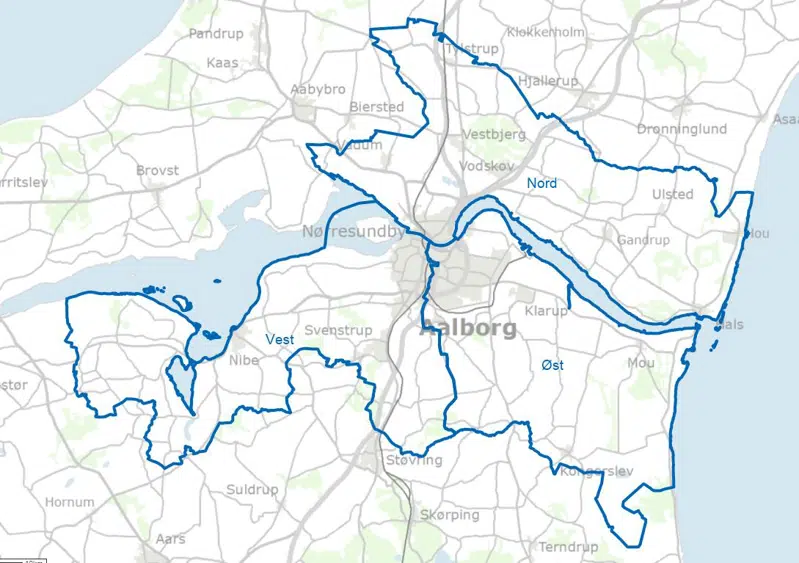 - Distrikt nord, som omfatter hele Aalborg Kommune nord for Limfjorden.